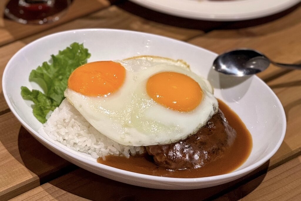 ライスに100%ビーフパティと目玉焼きをのせ、グレイビーソースをかけたハワイの郷土料理。ライスがもちっとしていておいしかった。