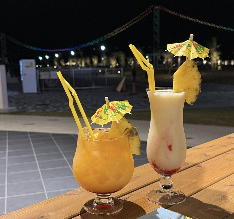 オレンジ風味の「ヴァージンマイタイ(825円)」とバナナ風味の「ヴァージンピニャコラーダ(880円)」。