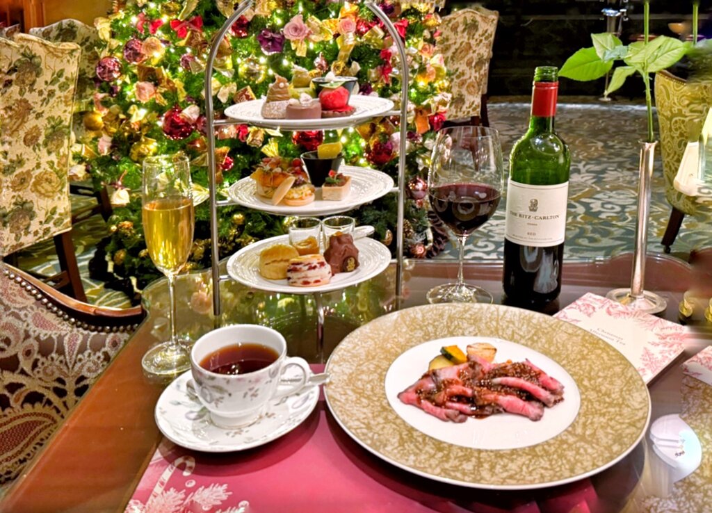 2024年12月14日(土)から2025年1月5日(日)の年末年始期間を除く、平日の17:00~19:00(L.O.)のオンライン予約限定で、アフタヌーンティーセットにローストビーフがつき、スパークリングワインなどから選べるドリンクがグラス1杯プレゼントされます。