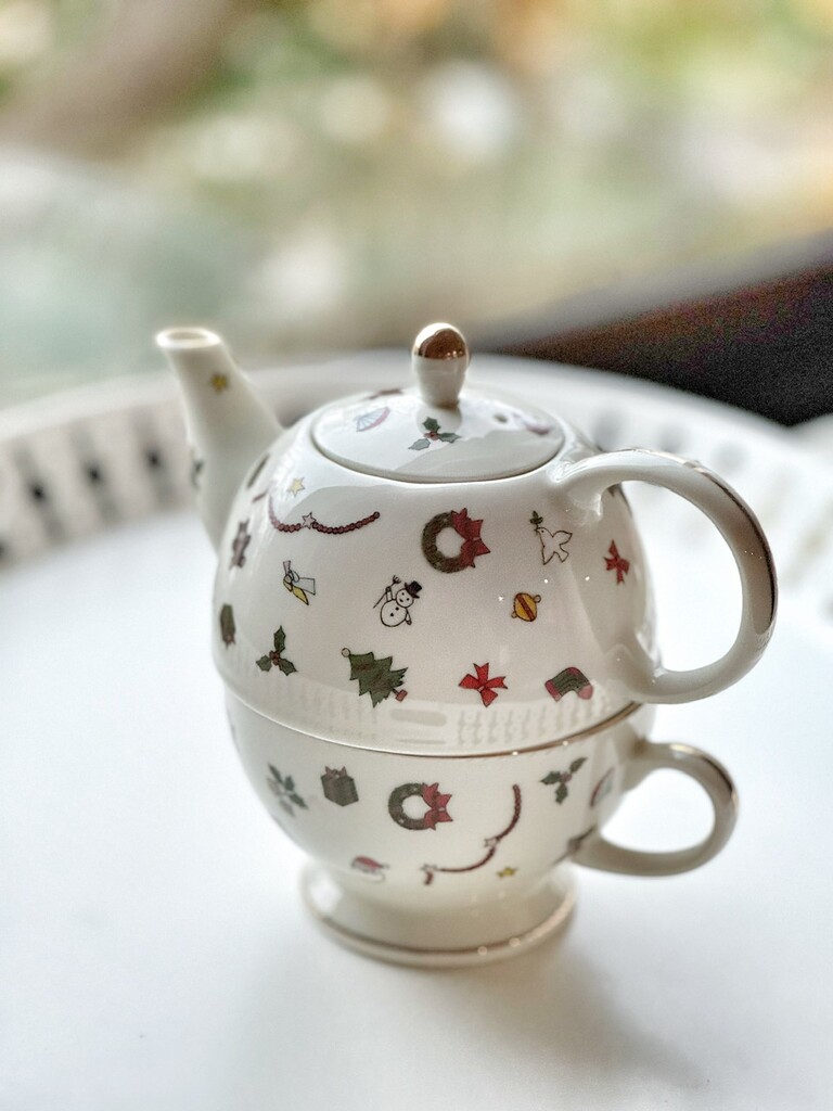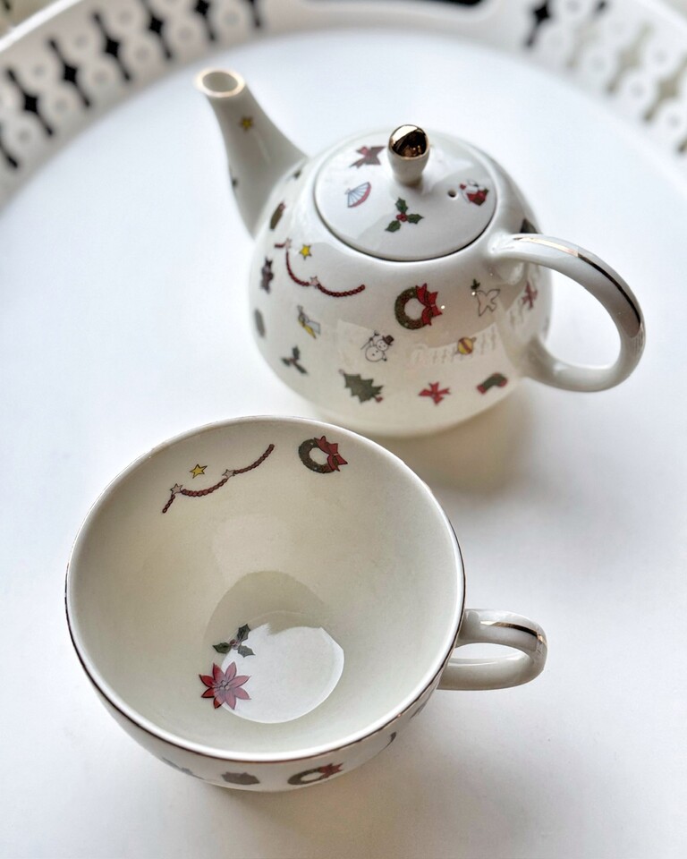 長年愛用しているクリスマスの時期に使うティーカップとポット。
