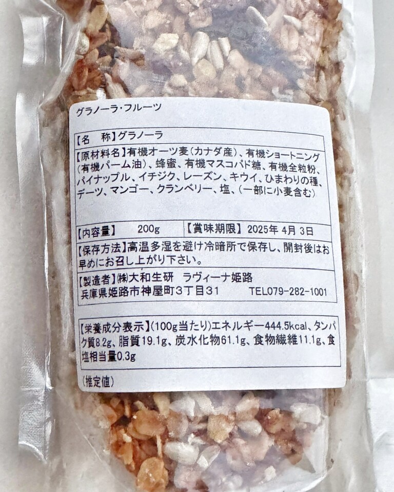実」には、同じく「有機オーツ麦」「有機ショートニング」「蜂蜜」「有機マスコバド糖」「有機全粒粉」に、「抹茶」「小豆」「くるみ」「クコの実」「塩」を合わせています。