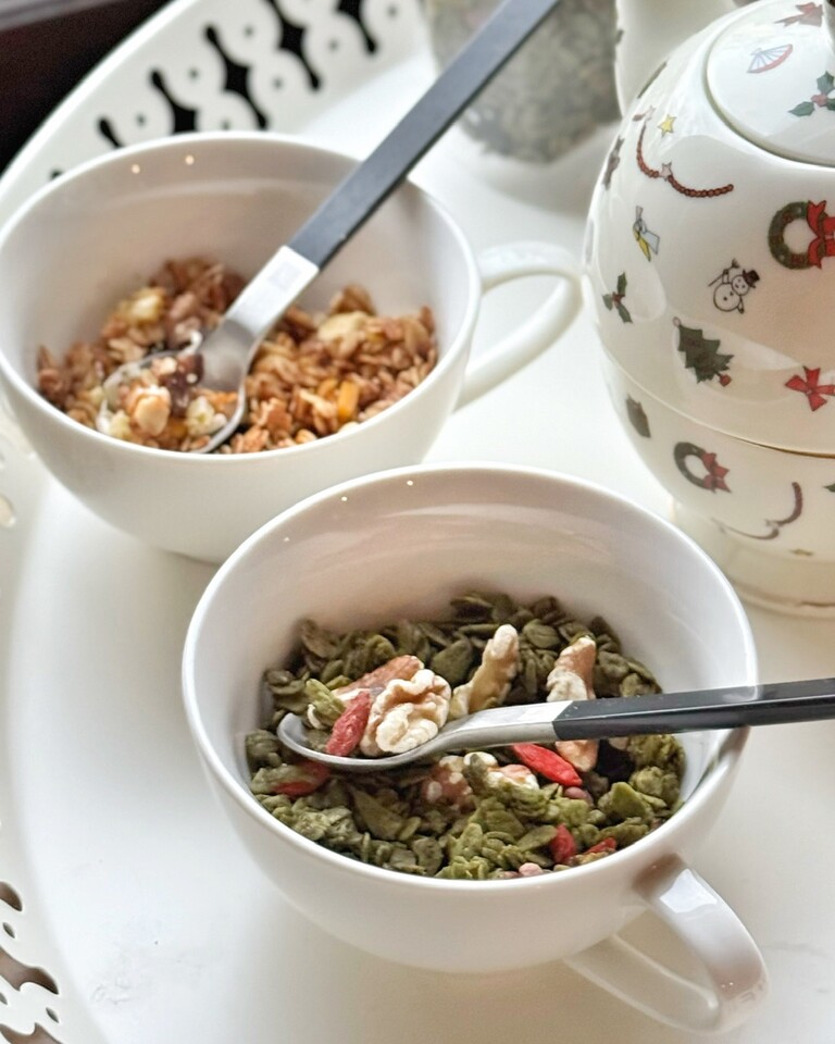 オーガニック食材を中心に、化学調味料、合成甘味料、白砂糖は使わず、パティシエたちが手作業で少しずつ作り上げるプレミアムなグラノーラ。