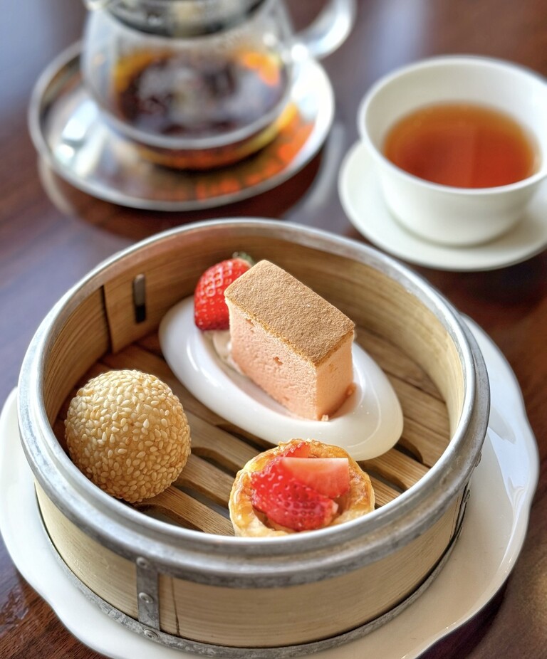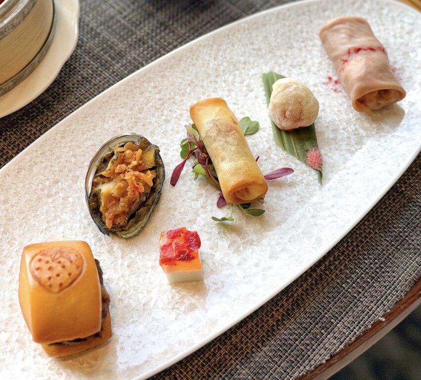 イチゴのアクセントを加えたモダンチャイニーズのセイボリー7種