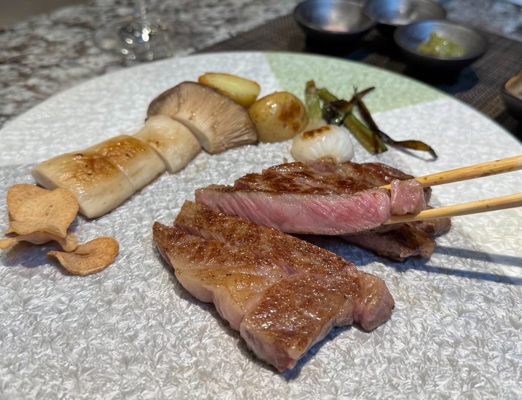 2種の塩、わさび、塩ポン酢が用意され、いろいろ味わいました。お肉はわさびと塩でいただくのがお気に入りです。