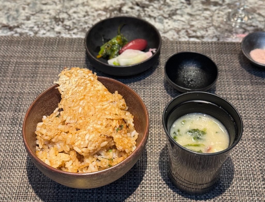 ・白米 福島県産”里山のつぶ”、味噌汁 東京都産”錦味噌”、香の物