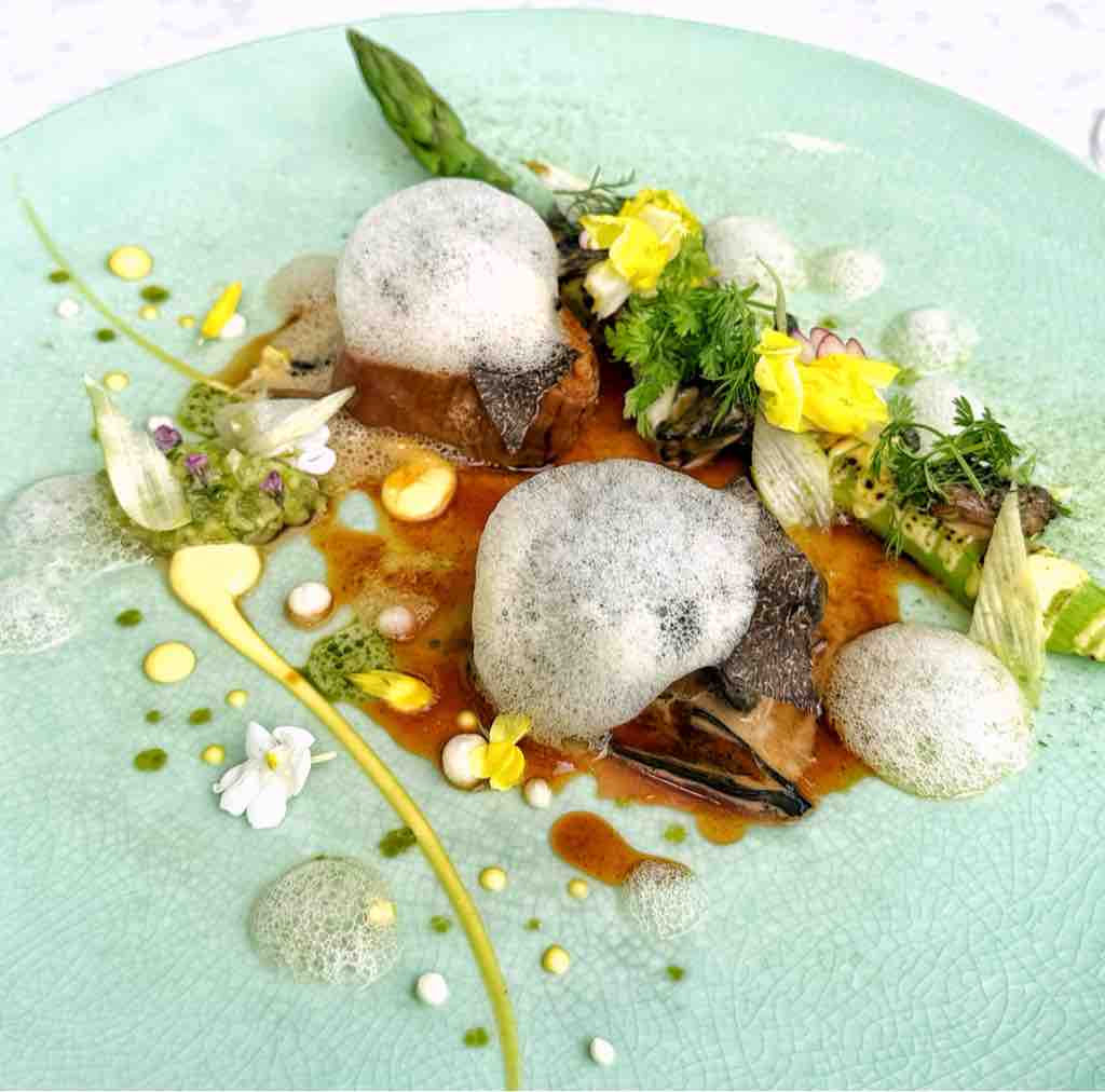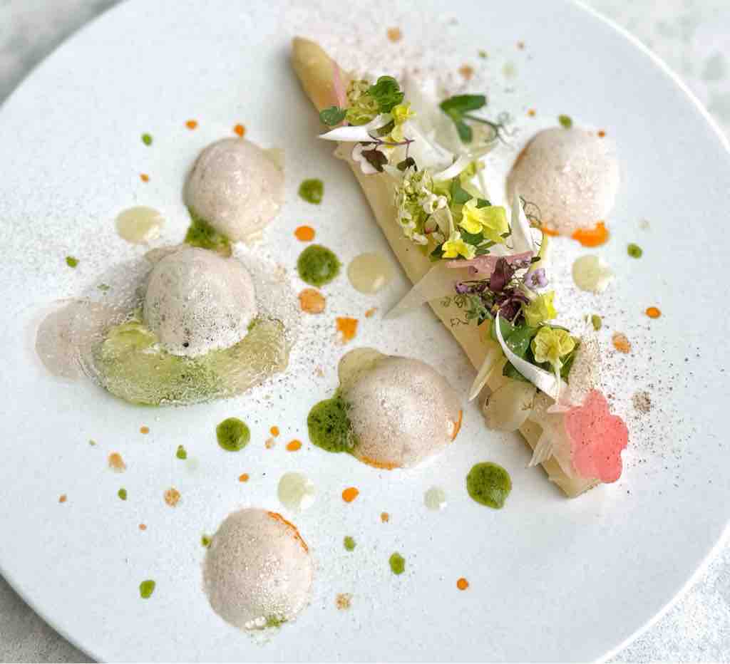 ホワイトアスパラガスの甘みと、ホタテとアオリイカを纏わせた旨味が口の中に広がります。白を重ねてこの味わいになるとはすごい発想👍