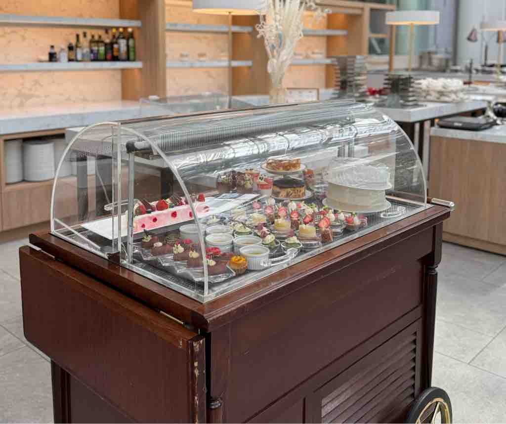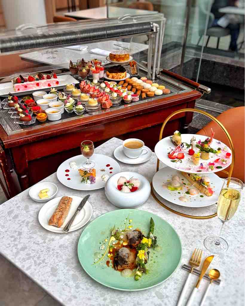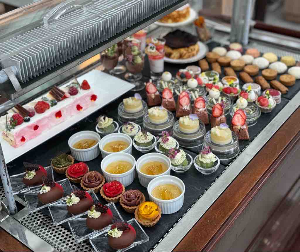 2段スタンドに美しく盛り付けられた前菜、シェフこだわりの本格的なメインディッシュ、そして20種類のスイーツとカフェメニューが時間制限なしで楽しめるという、夢のようなプランとなっています。