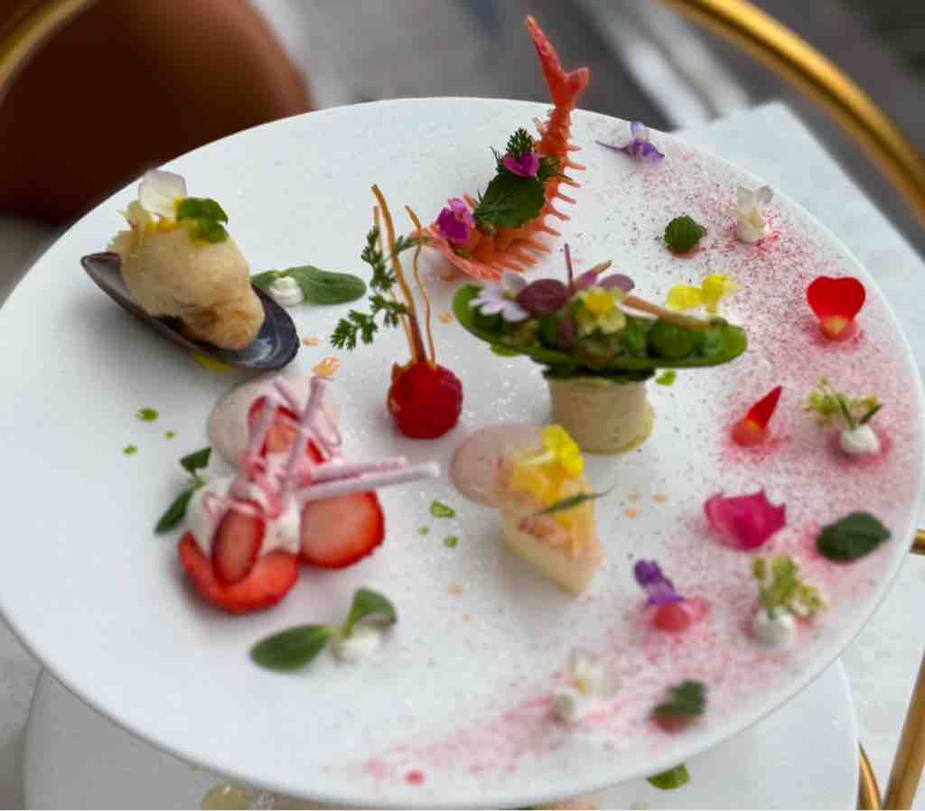 このコースは、アフタヌーンティースタンド、フレンチ、スイーツブッフェの3つの要素を組み合わせた、まさに「Cute」なフレンチです。