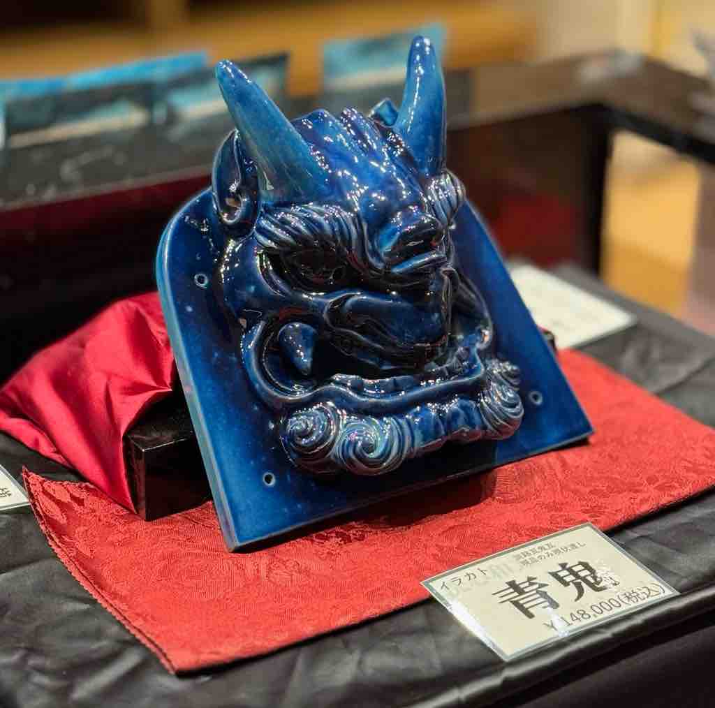 淡路瓦はブルーで美しい。この青鬼の河原は現品限り。