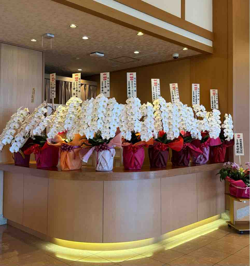 7月にオープンしたばかりで、お祝いのお花がたくさん届いていました。