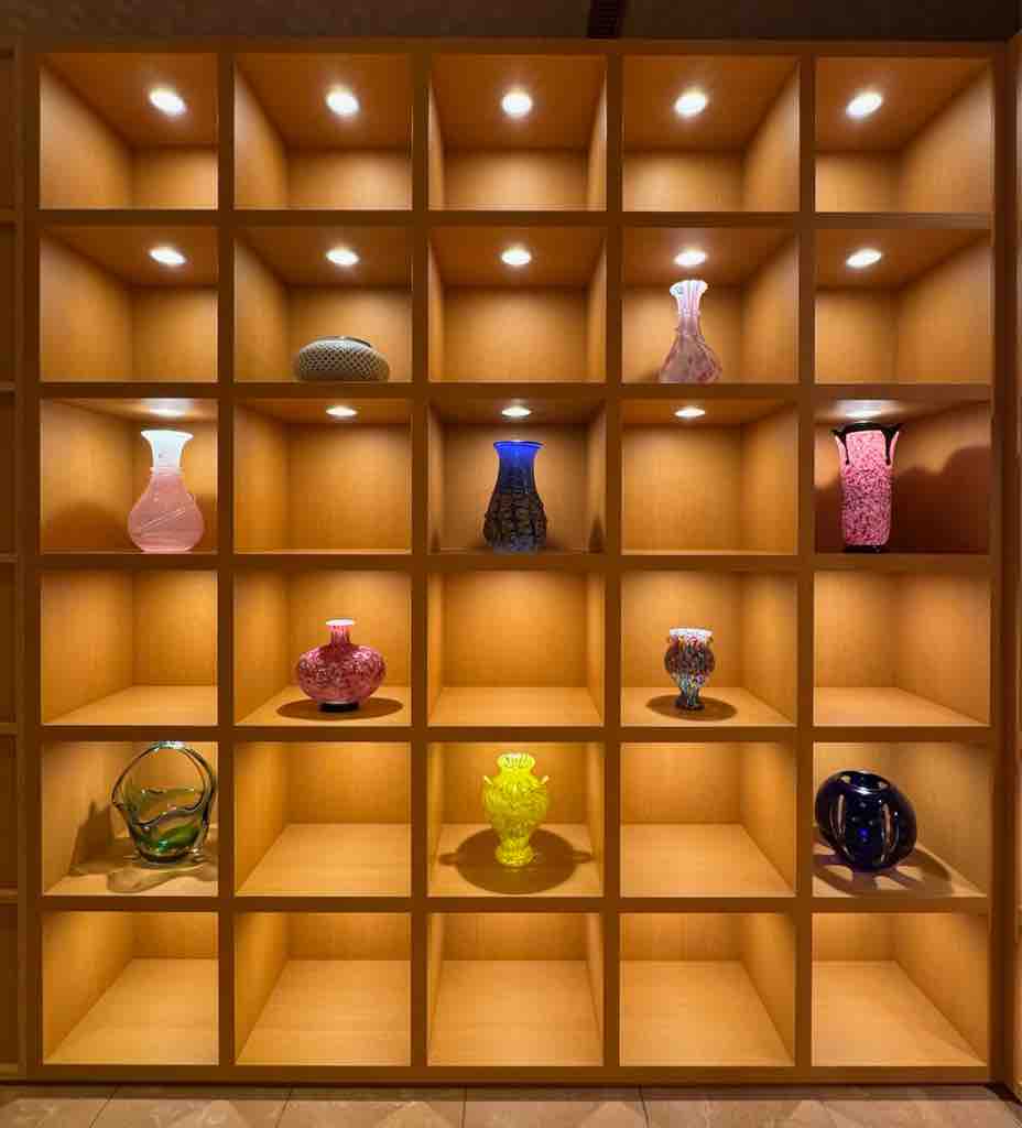 美しいガラスのツボにしばし見とれます。