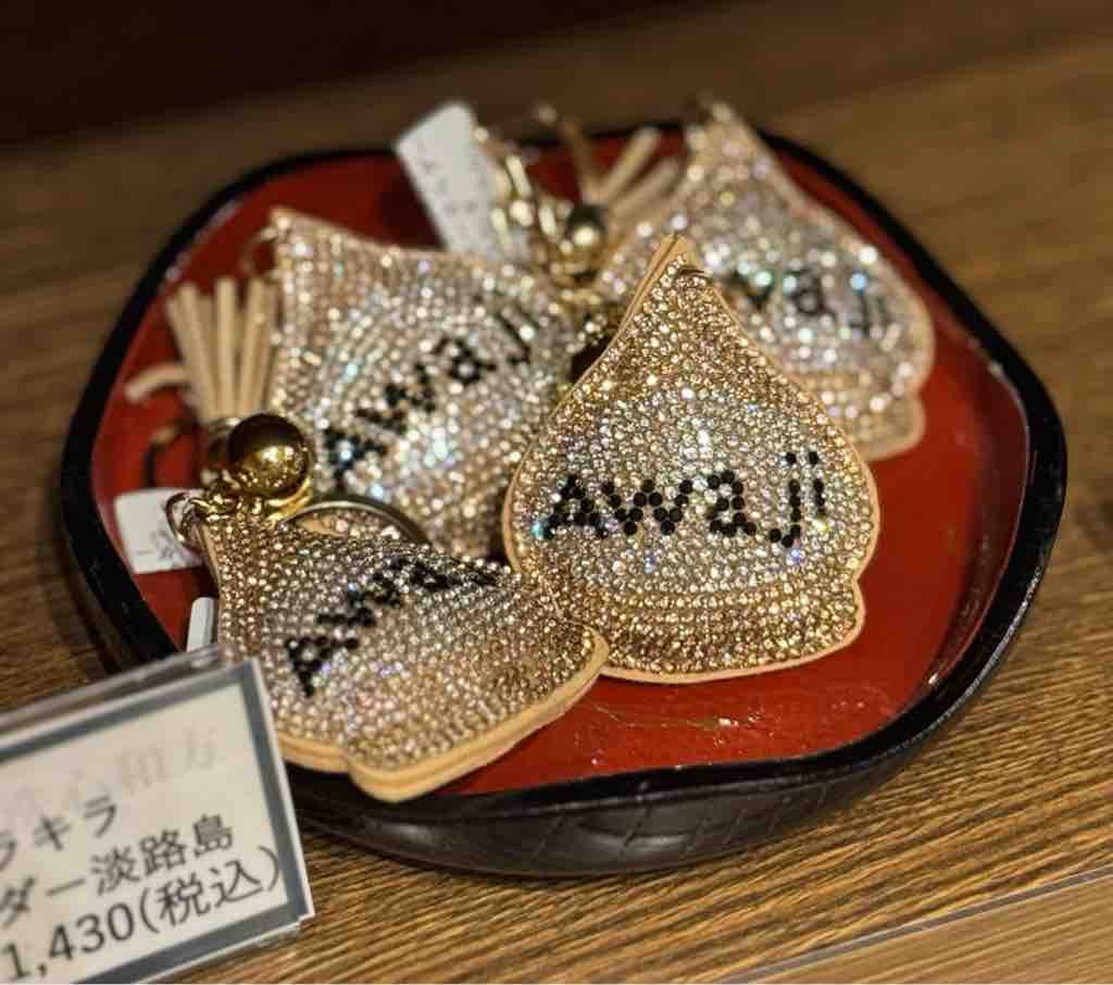 ラインストーンの玉ねぎストラップかわいい。