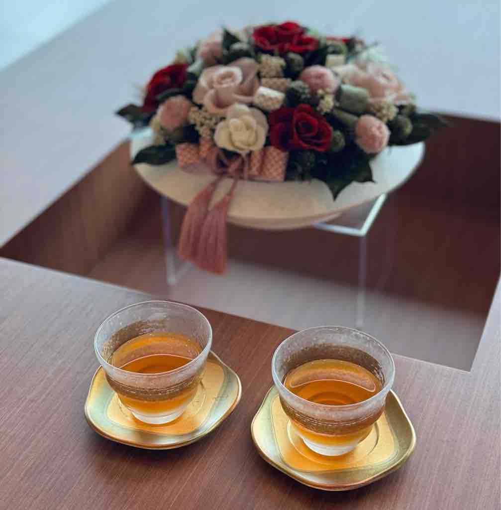 びわ茶が出されました。苦いけど効きそう〜😂