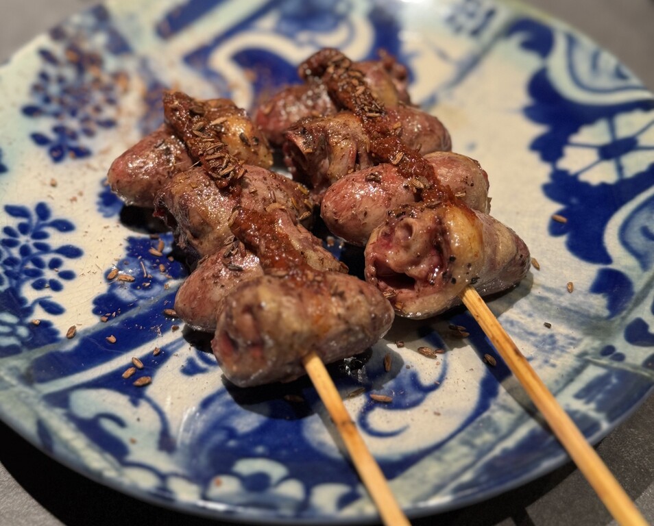 ハツ:唐辛子とクミンの「ハリッサ」。ぷりっとした食感とスパイシーさが好相性。