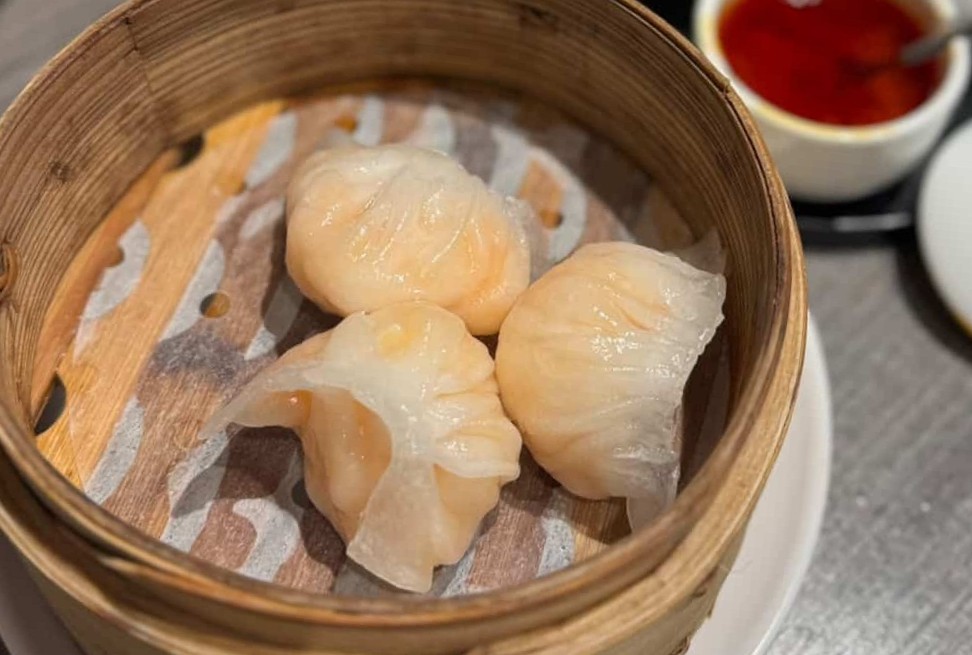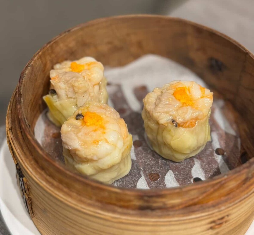 浮き粉の皮は透けるほど薄く、ぷりっぷりの海老がパンパンに詰まっています。味付けがしっかりしているので、何もつけなくても十分おいしい。(3個入り 820円)